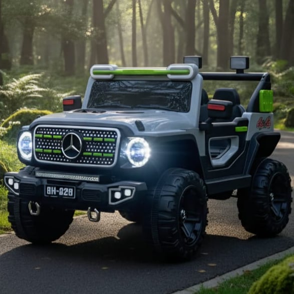 - تصميم واقعي: تتميز بتصميم سيارة جيب حقيقي، مع مصابيح أمامية ليد ساطعة، وعجلات قوية، وشبك أمامي فاخر، مما يجعلها تبدو كسيارة حقيقية مصغرة.