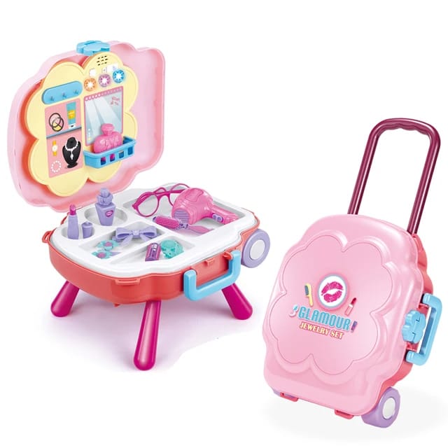 قدمي لصغيرتك فرصة للانغماس في عالم من التفاعل والمرح مع شنطة بنات لتسريحة الشعر التي تأتي بشكل شنطة سفر عملية، هذه اللعبة تتيح للأطفال التعبير عن إبداعهم وتعزز لديهم حس العناية بالنفس بفضل أدوات التجميل المصغرة.