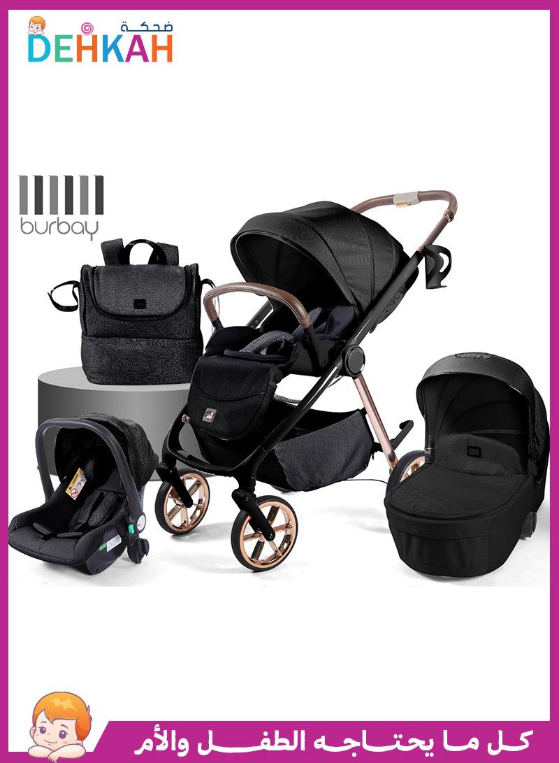 عربة أطفال ماركة (burbay) 5 في 1 كريكوت حديث الولادة وكرسي سيارة وشنطة للأم عجلات كبيرة وقابلة للطي