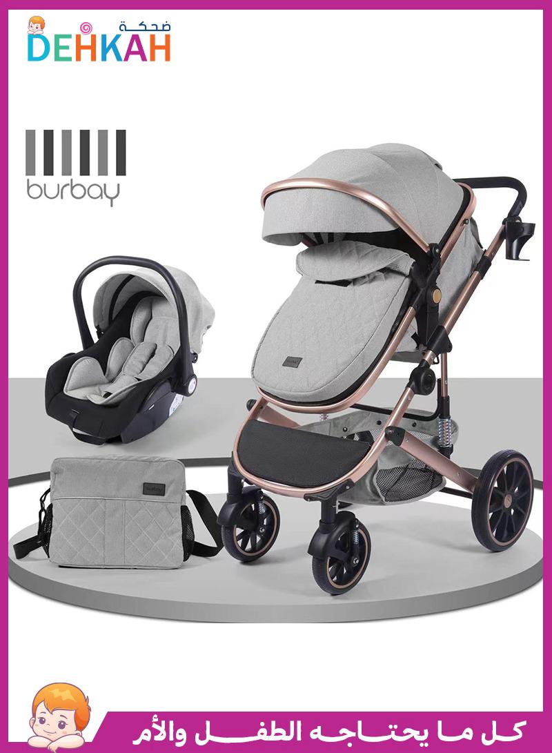 عربة أطفال 4 في 1 عربة شارع وكرسي سيارة هزاز وشيالة وحقيبة لمستلزمات الأم والبيبي مقدمة من بورباي