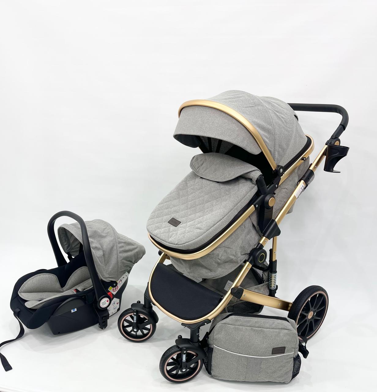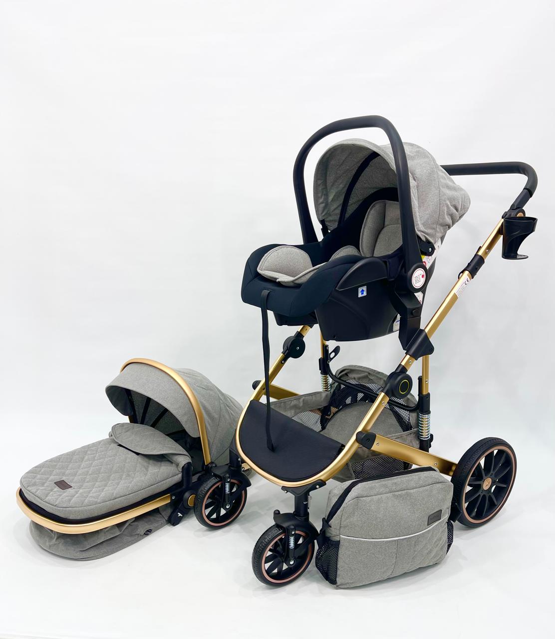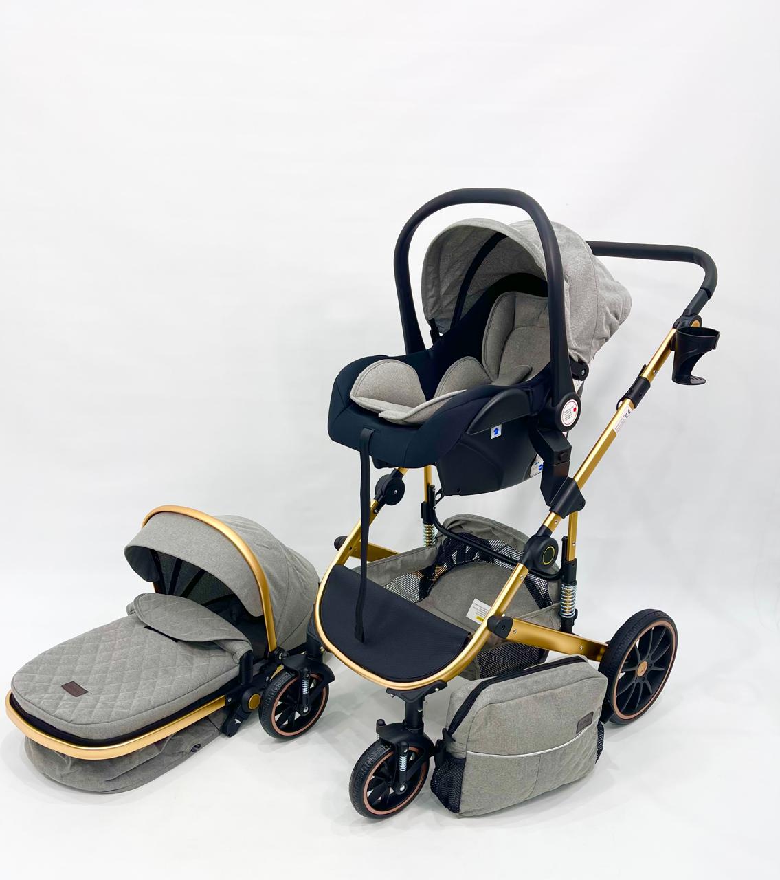 عربة أطفال4 في 1 – رمادي أنيق × ذهبي فاخر