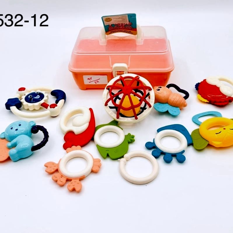 اجعل وقت لعب طفلك مليئًا بالسعادة والراحة مع صندوق عضاضات أطفال، هذا الصندوق يحتوي على 11 قطعة متنوعة من العضاضات والخشاخيش المصممة خصيصًا لتلبية احتياجات طفلك أثناء التسنين مع توفير المرح في نفس الوقت.