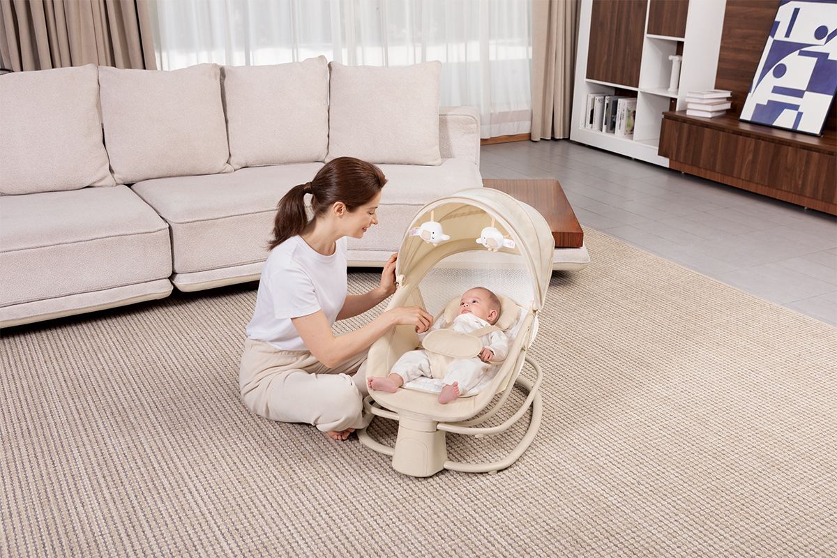 كرسي هزاز 4 في 1 ماستيلاهذا الكرسي الذكي ليس مجرد كرسي، بل هو حل متكامل يواكب نمو طفلك! يتميز بـ 5 مستويات اهتزاز لتهدئة الطفل، مع إمكانية التحكم به عن طريق الجوال أو من خلال شاشة لمس مدمجة. كما يحتوي على نغمات مدمجة تساعد على استرخاء طفلك. يمكن استخدامه كطاولة طعام أو ألعاب، ويأتي مع ناموسية للحماية، وفرش من القطن لراحة فائقة. يمكنك تعديل مستويات الجلوس والنوم، كما يتميز بـ حزام أمان خماسي لسلامة مضمونة، وقدرة على التصفيط بسهولة أو فصله ليصبح هزازًا يدويًا.